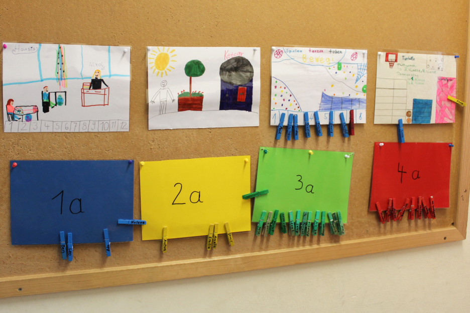 Der Eingang der Mittagsbetreuung ist über den Pausenhof der Schule zu erreichen. Die Gruppe A befindet sich im oberen Stockwerk.